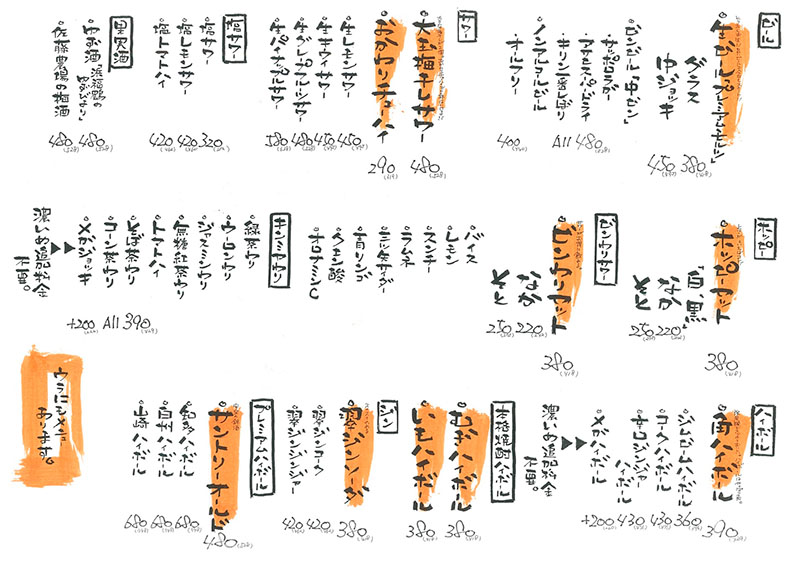 - 営業時間 (月~木)16:00~1:00(金)18:00~2:00(土)15:00~2:00(日・祝)13:00~24:00