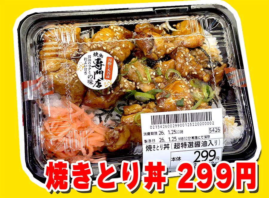 焼き鳥がしっかり入っていて、安くてたっぷり、コスパ花丸なお弁当です。