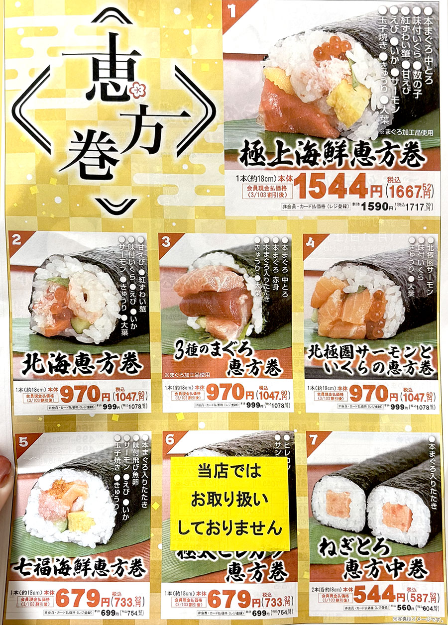 ※恵方巻の種類や販売価格は、店舗によって異なる場合があります。