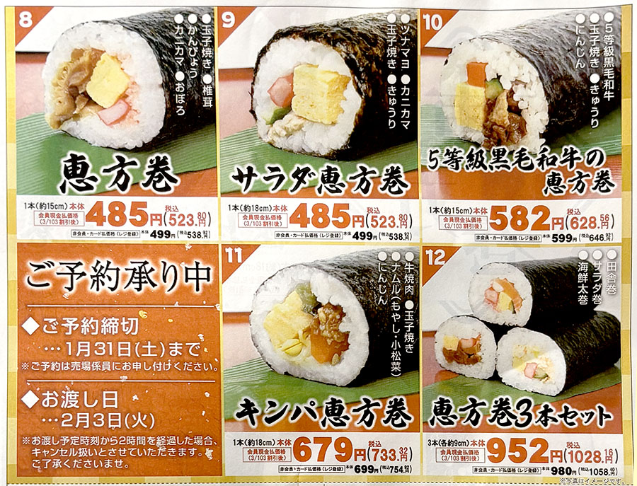 | ⑫恵方巻3本セット | 980円 |