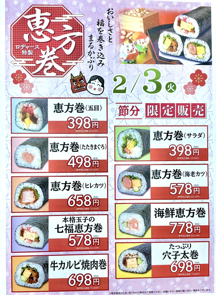 ※恵方巻の種類や販売状況は、店舗によって異なる場合があります